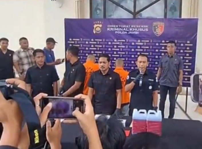“Adapun mobil BBM Industri Non subsidi tersebut ada 2 unit ditahan terparkir di halaman Mapolda Jambi yang di tahan beberapa hari yang lalu (01/11/2025) dengan muatan diduga BBM Oplosan lebih kurang 32 ton.” Ujarnya