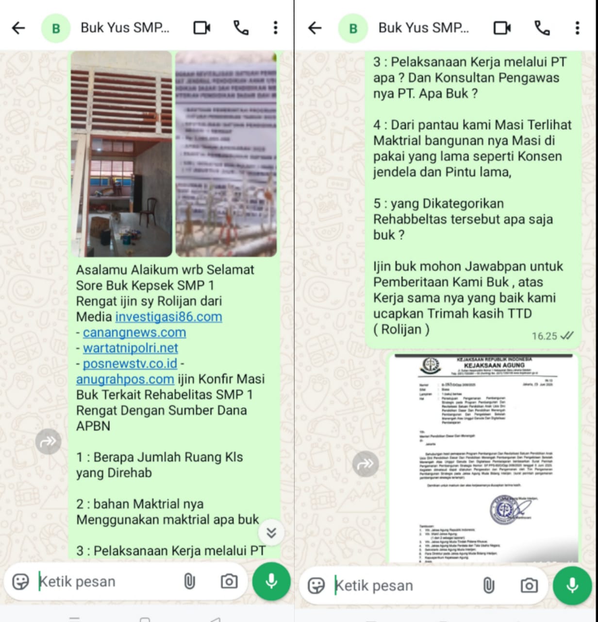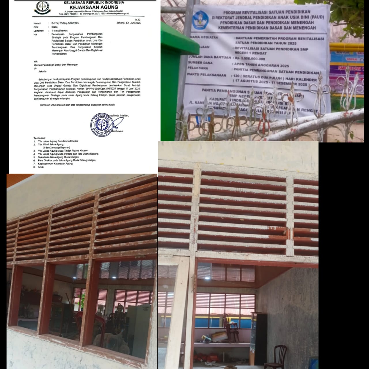 Proyek Revitalisasi SMPN 01 Rengat Indragiri Hulu, Riau, Bantuan Pemerintah, program revitalisasi satuan pendidikan tahun 2025 SMP 1’Negeri Rengat perlu di pertanyakan Kembali tetang Penggunaan anggaran dana Bantuan Bersumber” Dana : APBN tahun 2025 Sebesar RP 2.056.000.000, di Minta kejaksaan Negri Kabupaten Indragiri Hulu Provinsi Riau Awasi Dan Audit.