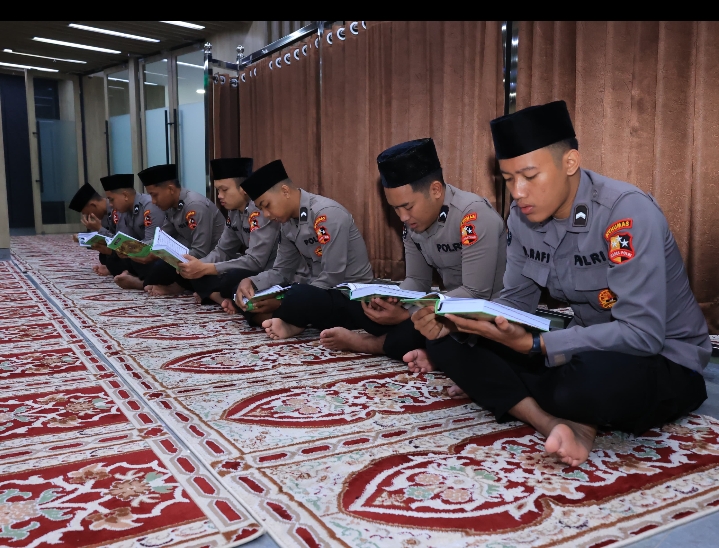 Jakarta – Suasana khidmat menyelimuti Mushola lantai 3 Gedung Divisi Humas (Divhumas) Polri pada Senin pagi (25/8/2025). Sejak pukul 06.00 WIB, para personel Polri bersama tahfidz lulusan Perguruan Tinggi Ilmu Al-Qur’an (PTIQ) Jakarta mengikuti kegiatan pengajian dan khataman Al-Qur’an.