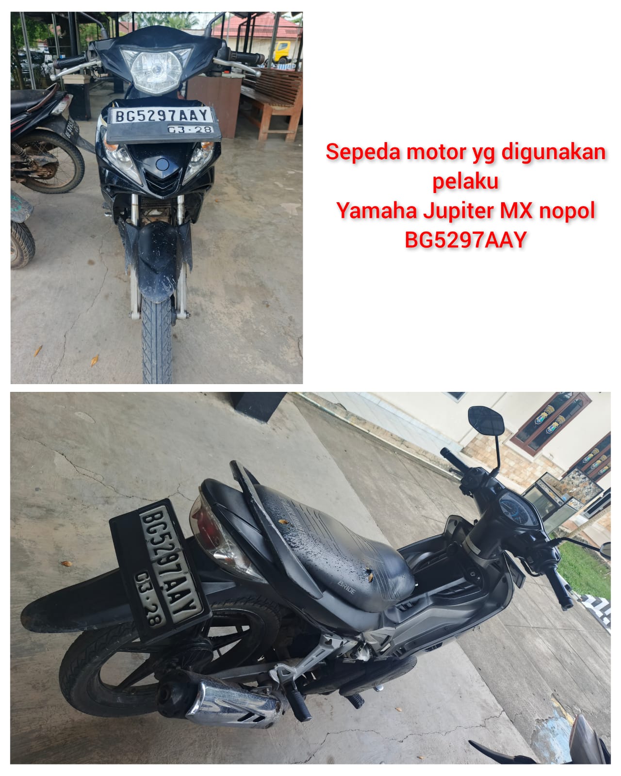Adapun identitas kedua pelaku yaitu JH (39) dan BRA (27) Warga Desa Mangun Jaya Kecamatan Kayu Agung Kabupaten Ogan Komering Ilir (OKI) Provinsi Sumatera Selatan.