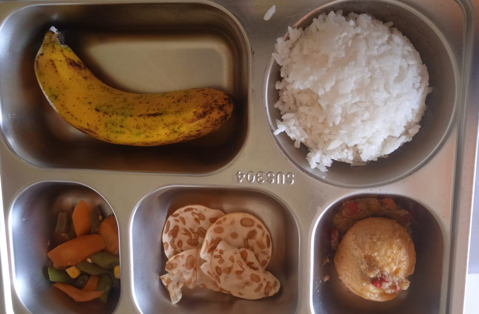Dalam pantauan wartawan di salah satu sekolah penerima, menu yang dibagikan terdiri dari nasi putih, telur bulat, potongan tempe, sayur kacang, dan pisang. Beberapa penerima manfaat mengaku menu tersebut sudah menjadi santapan rutin mereka.