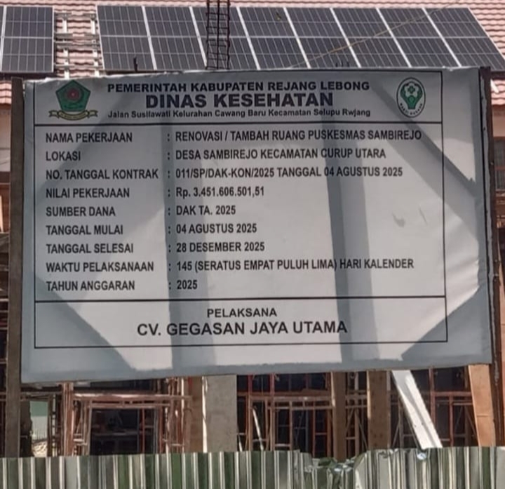 Hal inilah yang terjadi pada kegiatan pekerjaan renovasi tambah ruang puskesmas Sambirejo kecamatan selupu rejang kabupaten rejang lebong.